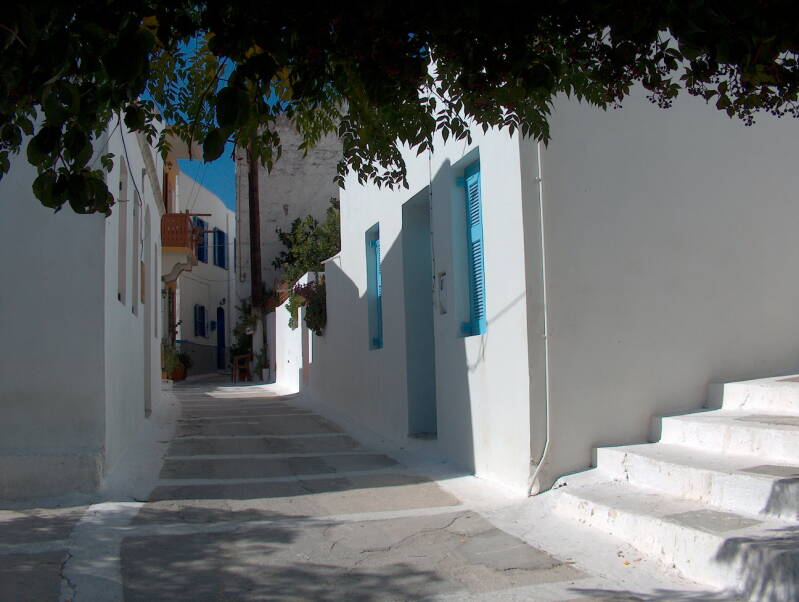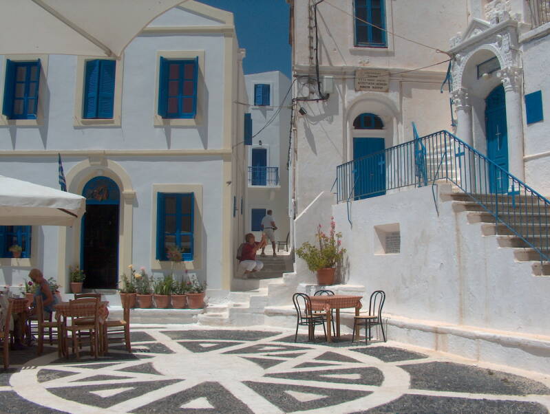 Au sud de l’île, Nikia , charmant petit village perché en haut d’une falaise de 400m entre mer et volcan. Très typique.